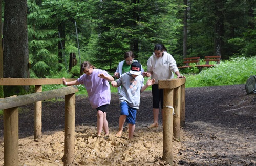 Besuch im Barfußpark Hallwangen mit Grillen und Spielen.